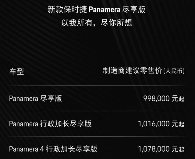 Panamera 尽享版以99.8万元的起售价开启预售,这是这个系列第一次正式迈进百万以内的地界。