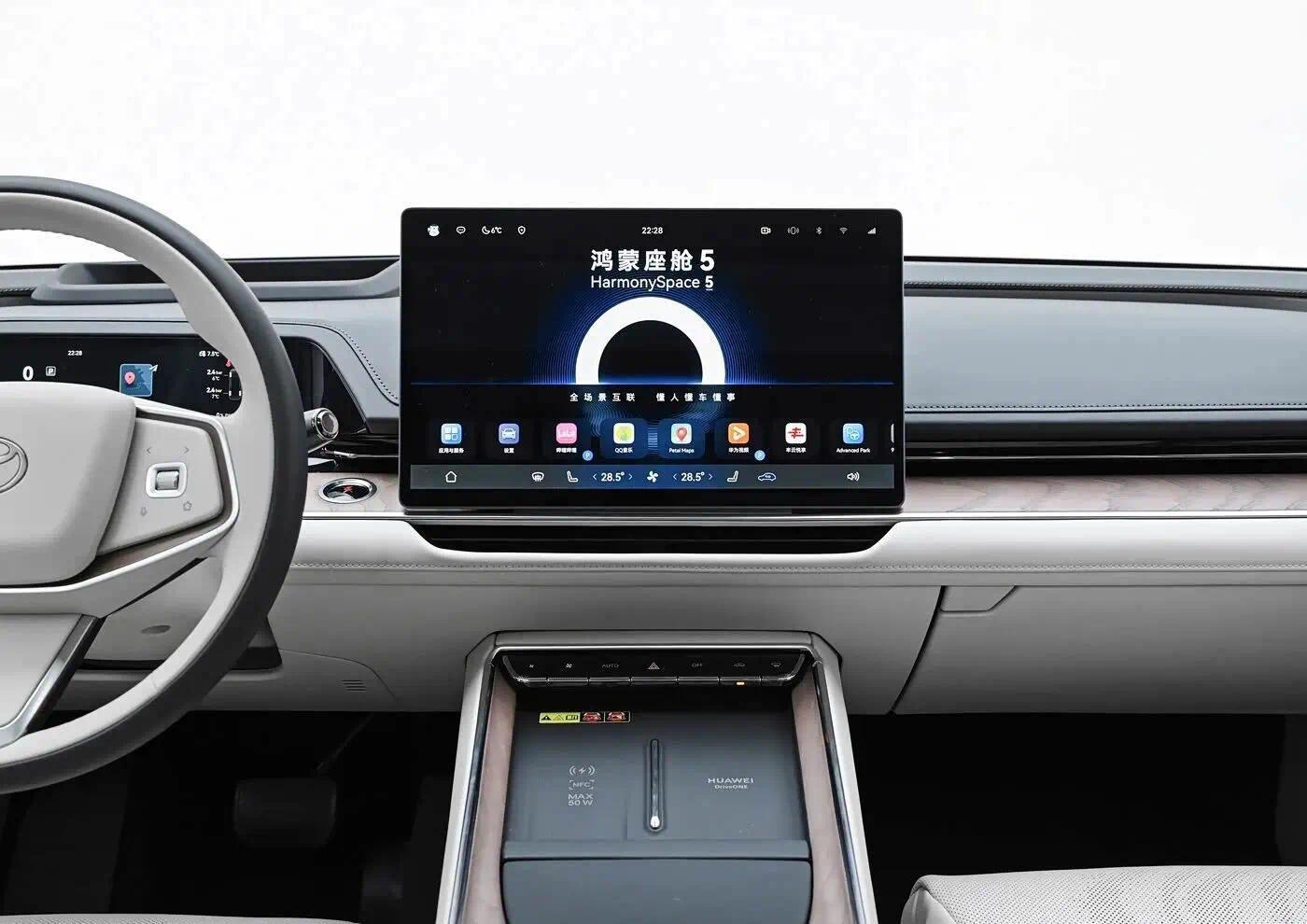 三电部分,电驱是华为Drive One,电池是中航新航的,不是宁德也不是比亚迪。这不是随便拉个供应商凑数,是选了两家新但不陌生的——中航新航去年刚进广汽埃安供应链,华为电驱在问界M5上跑过几万公里。