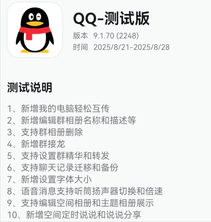 这次我更在意生态节拍。QQ 升到 9.1.70,“我的电脑”互传、群相册命名与删除、群接龙、聊天记录迁移/备份,把老问题一个个对上号;